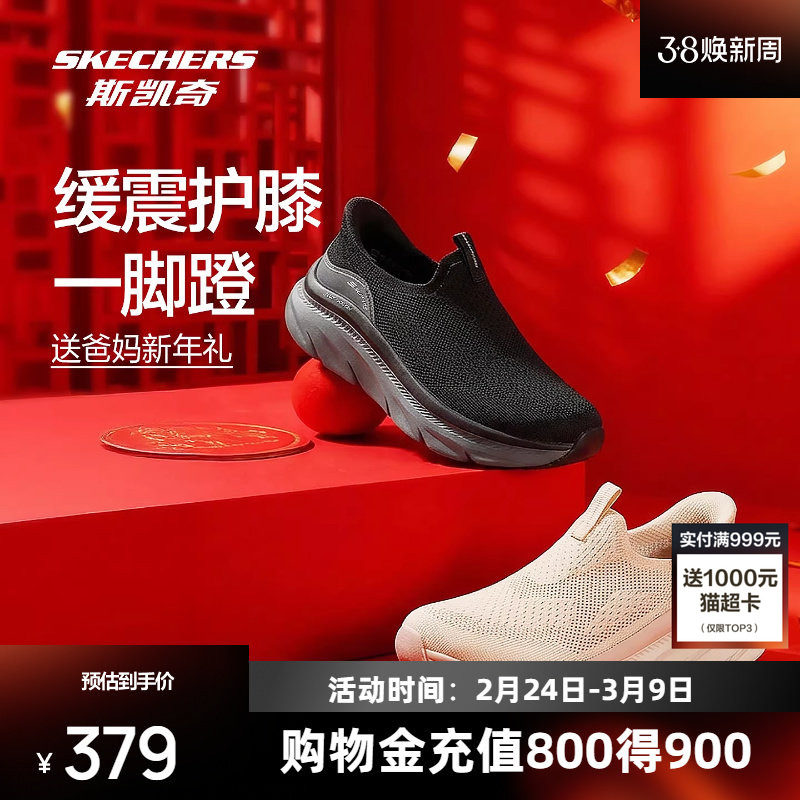 斯凯奇闪步健步鞋男女同款运动健步鞋舒适缓震一脚蹬时尚潮流百搭