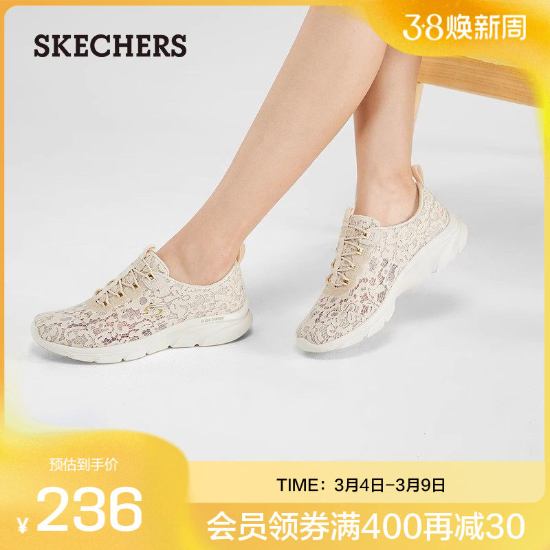 斯凯奇skechers 新款夏女鞋休闲鞋透气运动鞋蕾丝网面鞋健步鞋
