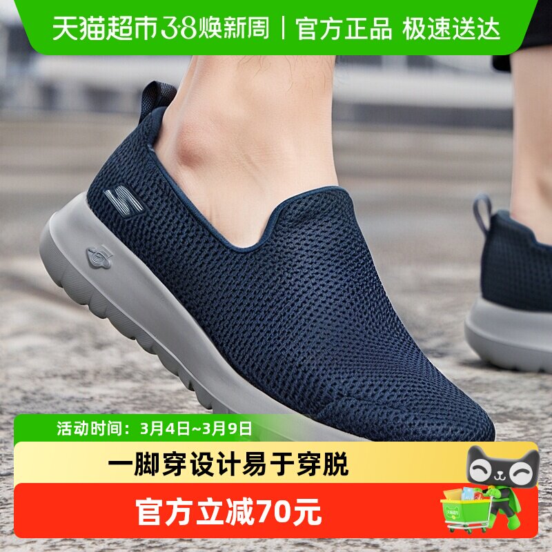skechers斯凯奇一脚蹬男鞋春季新款网面健步鞋轻便休闲运动鞋子男
