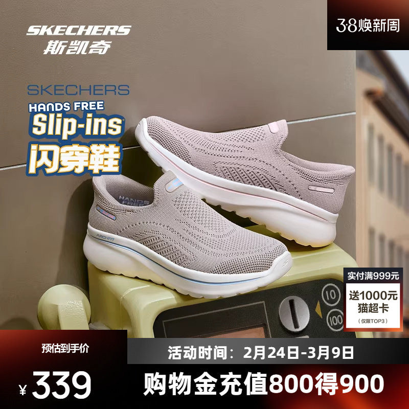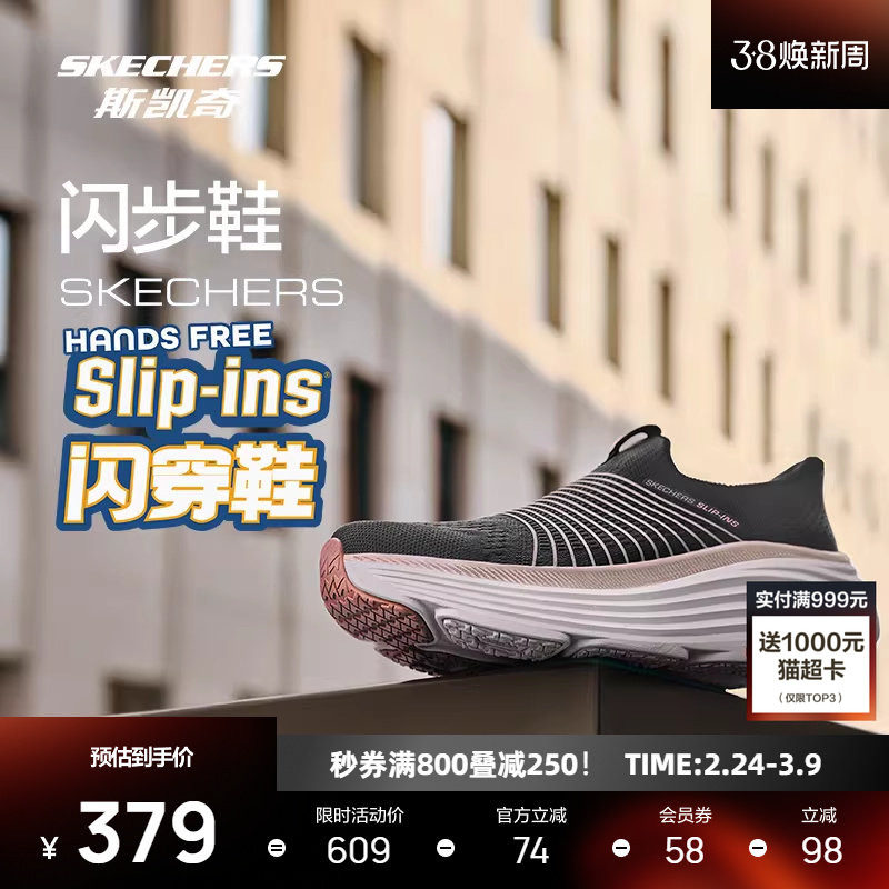 闪穿鞋Skechers斯凯奇slip ins春季女鞋一脚蹬妈妈透气运动健步鞋