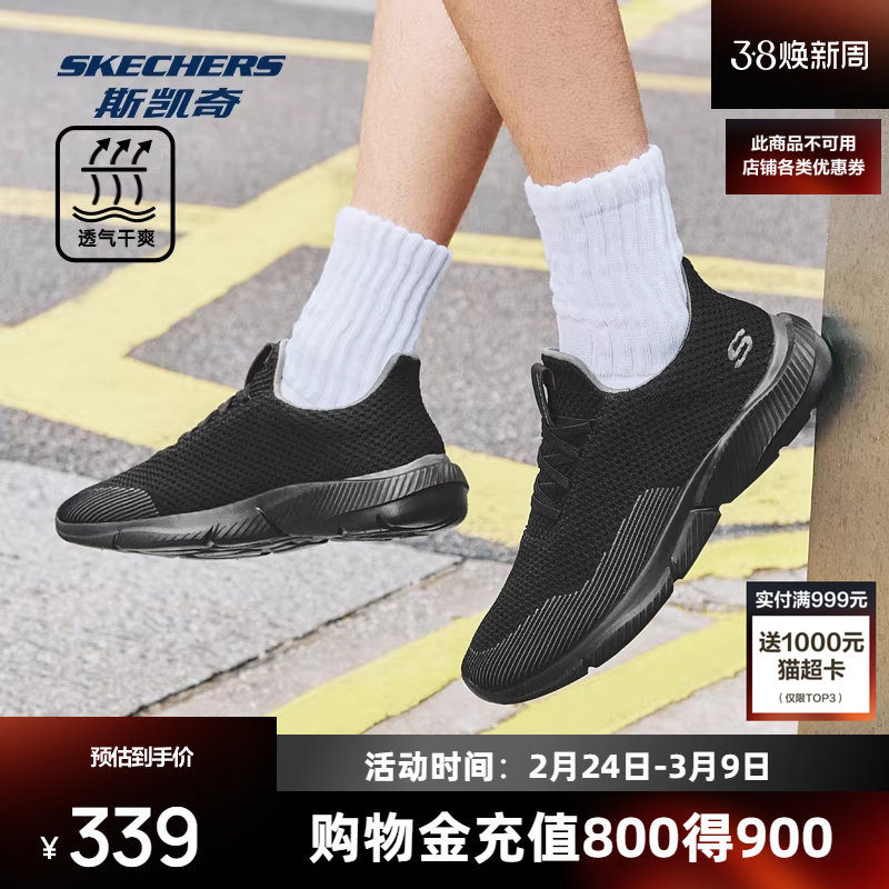 Skechers斯凯奇男鞋春夏一秒闪穿健步鞋网面透气休闲运动鞋220612