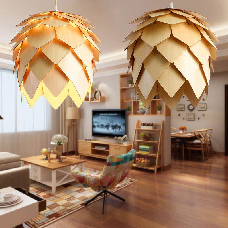 餐厅松果吊灯北欧风格创意个性服装店单头灯具现代木艺吧台小吊灯