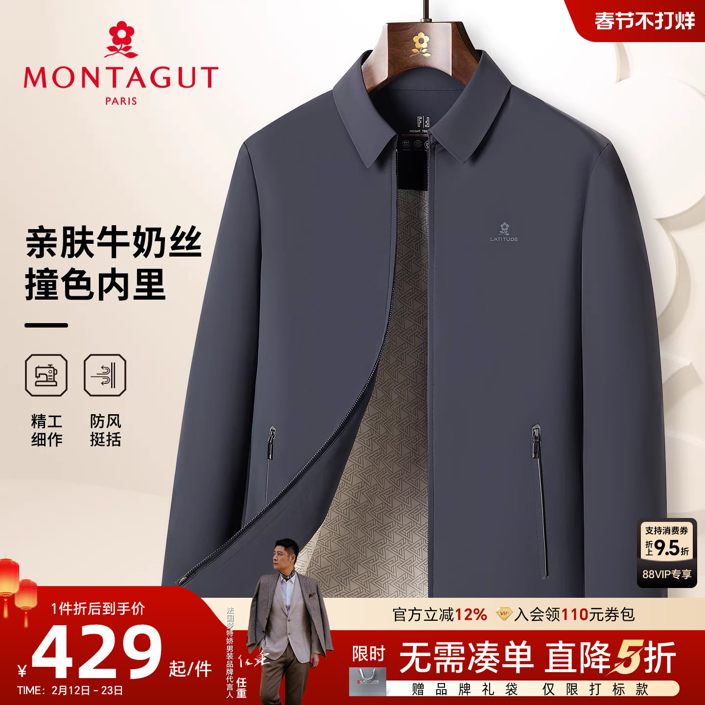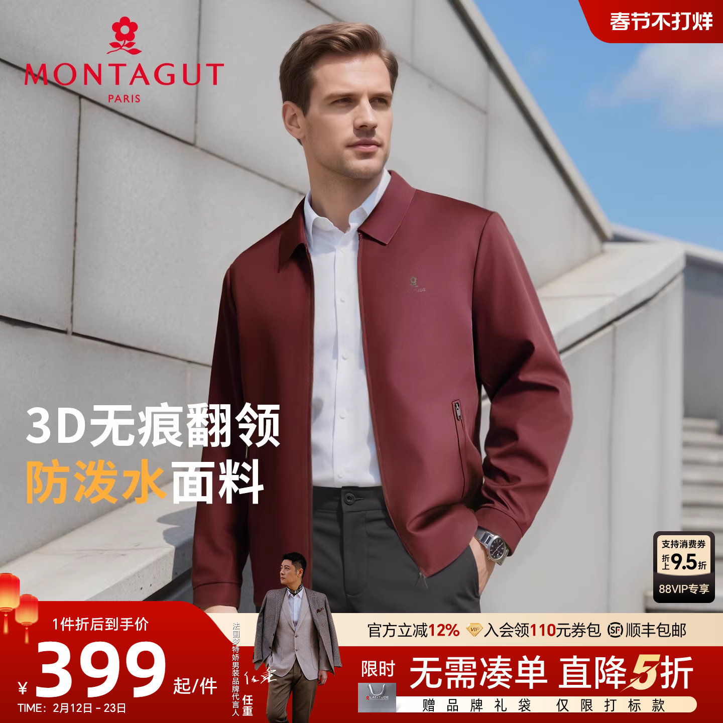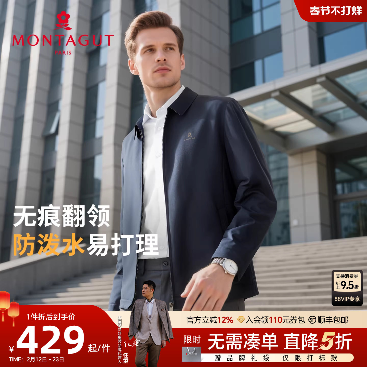 [无痕领/防泼水]梦特娇男士夹克26春季商务翻领中年行政外套抗皱J