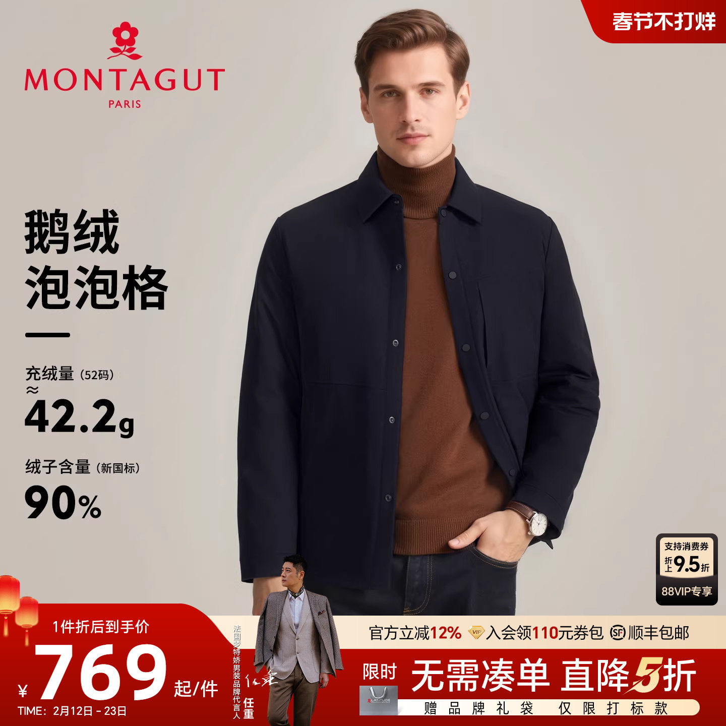牛奶丝面料-梦特娇中年男士羽绒服夹克翻领商务休闲冬季保暖外套Z