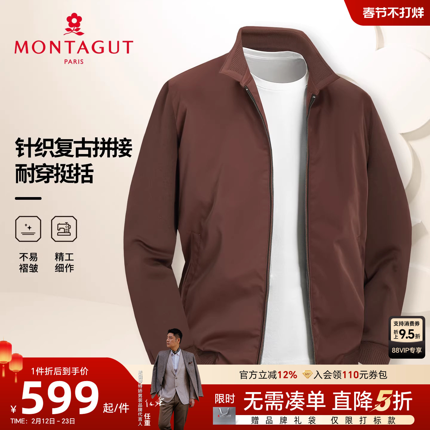 [针织复古拼接]梦特娇男士夹克26春季时尚中年翻领外套耐穿挺括C