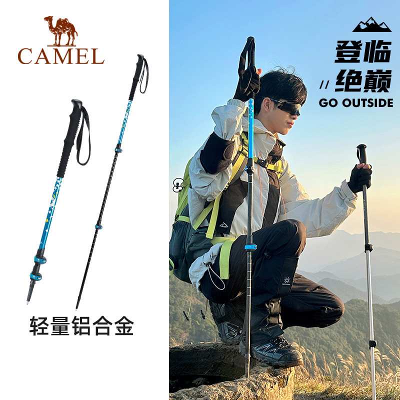 骆驼户外登山杖手杖铝合金轻量多功能可伸缩拐棍徒步拐杖爬山装备