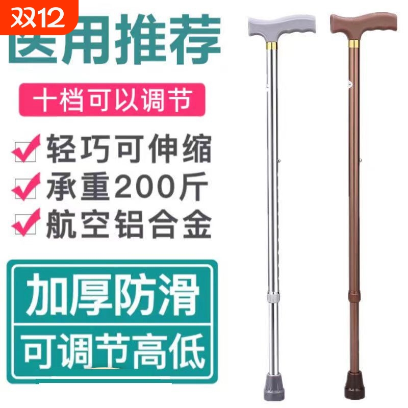 加厚铝合金可伸缩拐杖, 2节伸缩可调高度拐棍 防滑老年人手杖