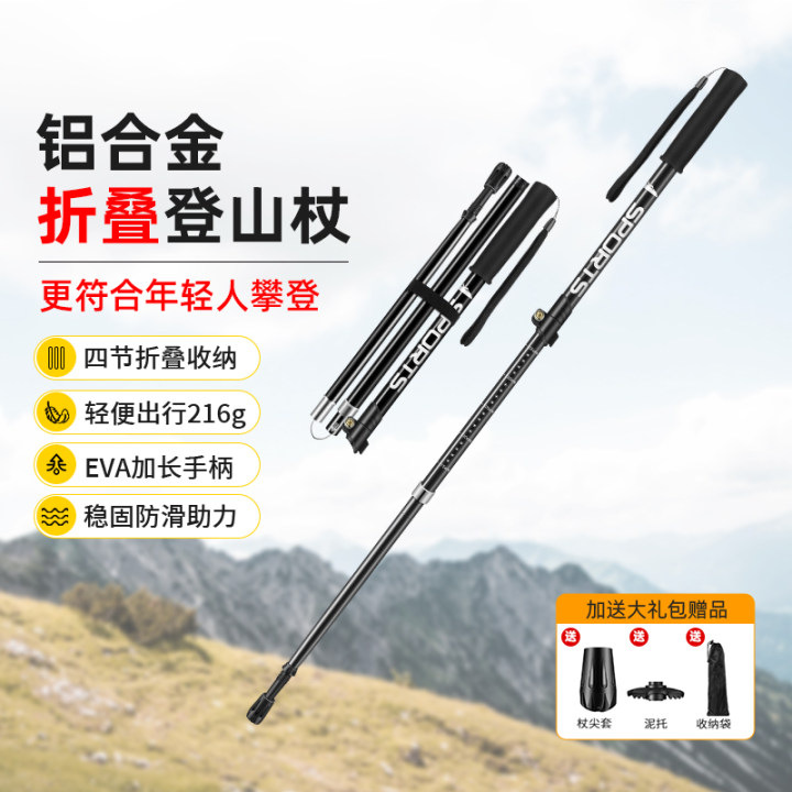 登山杖可折叠伸缩超轻便拐杖女户外老人徒步装备手杖拐棍防滑便携