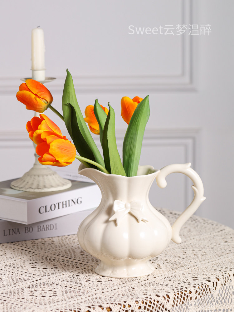 欧式奶油色陶瓷花瓶复古插花蒜头蝴蝶结宫廷轻奢鲜花客厅天使奶壶