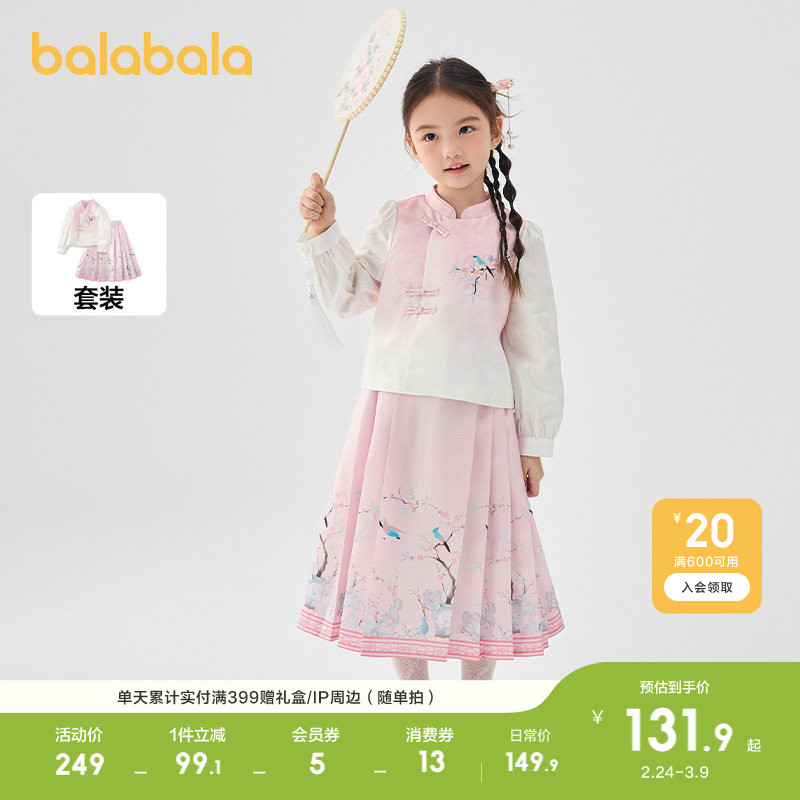 巴拉巴拉女童马面裙儿童汉服裙子2025春秋新款国风假两件古风套装