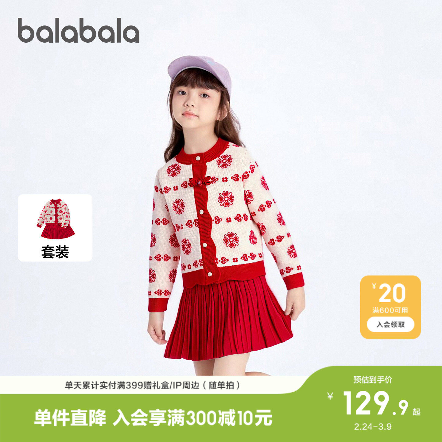 巴拉巴拉童装女童套装儿童长袖两件套2026春秋装拜年服百褶裙红色