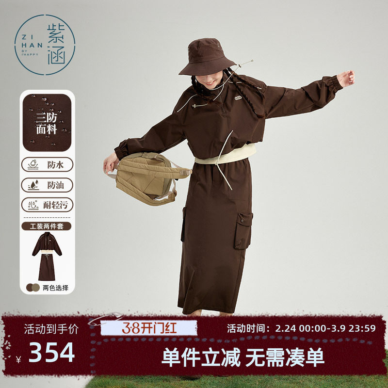 紫涵复古户外通勤假两件立领上衣直筒工装裙两件套装女春秋季新款