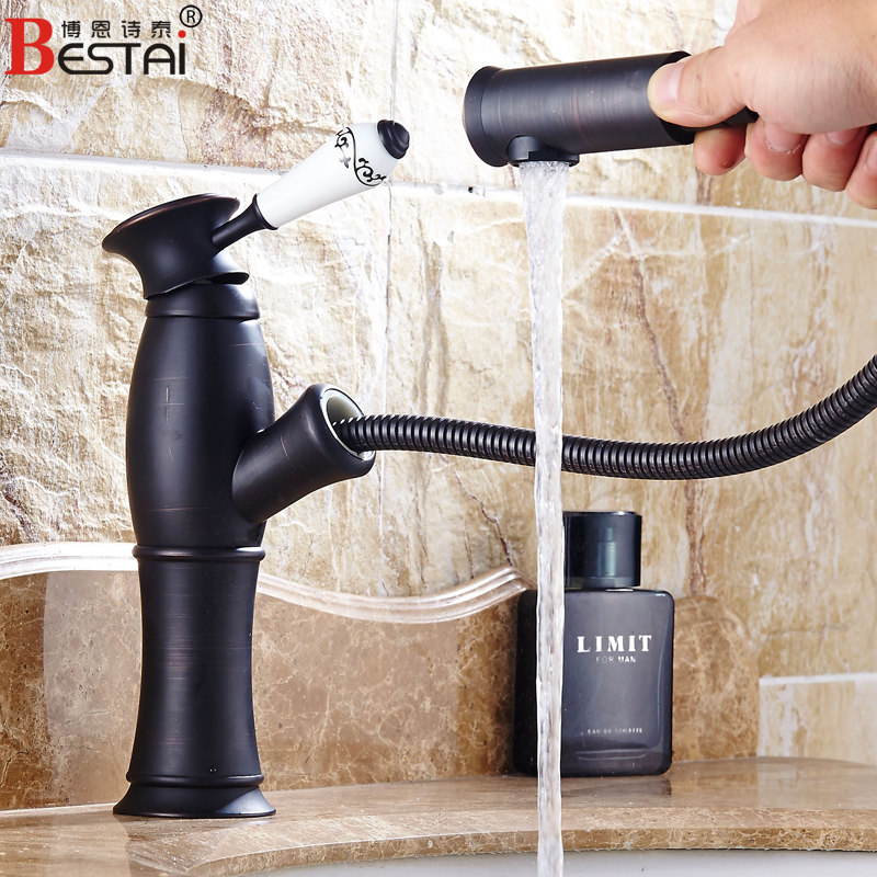 仿古可抽拉式面盆水龙头 全铜 黑古铜/色 洗脸盆洗头冷热水龙头