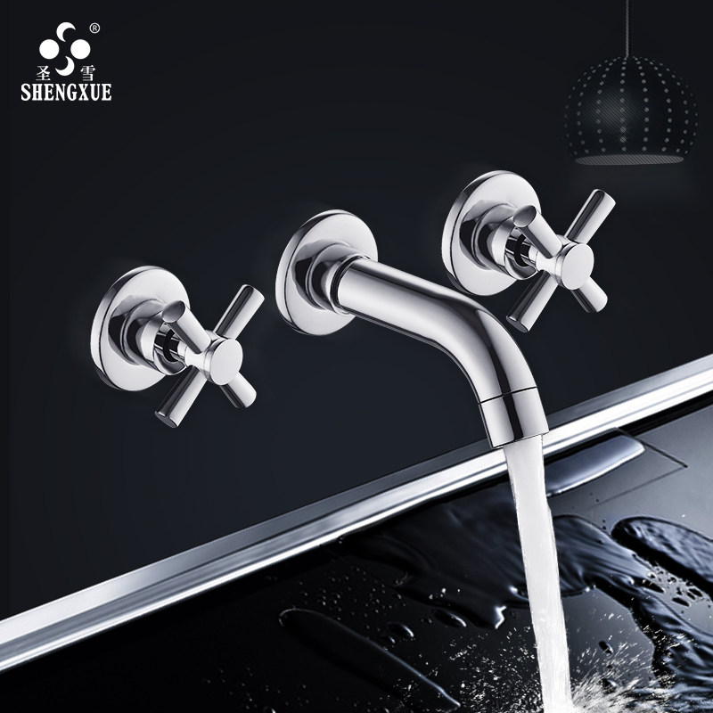 入墙双把三孔分体式面盆水龙头 全铜冷热水暗装浴室柜龙头三件套