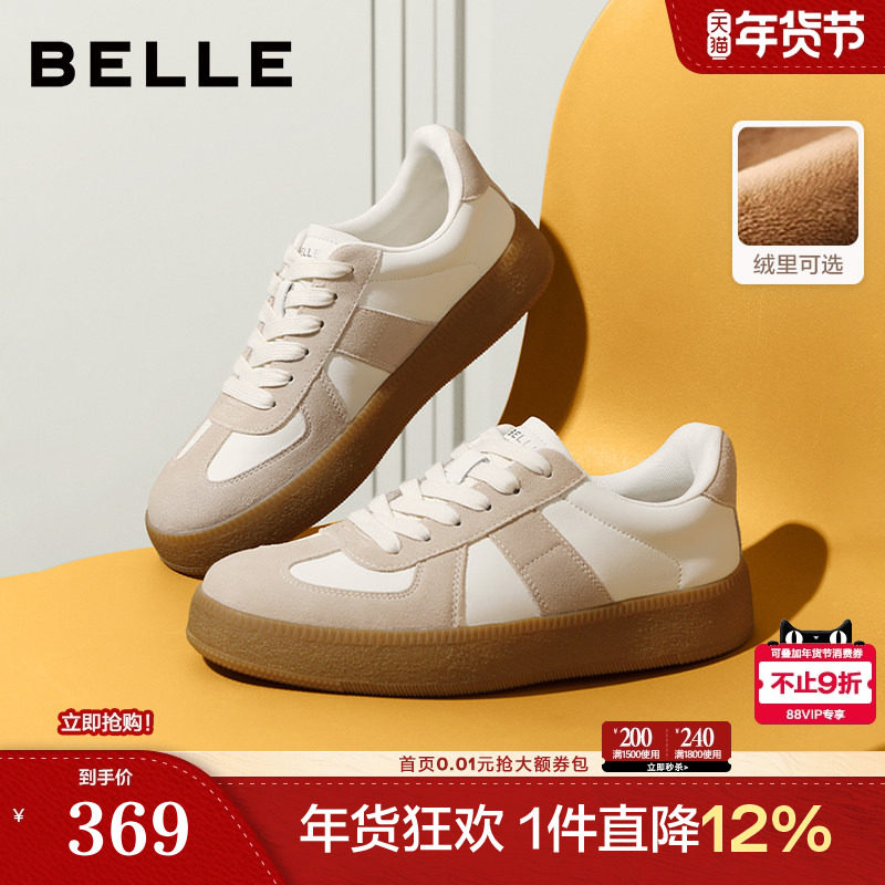 张凌赫同款百丽午逅厚底休闲德训鞋男小白鞋秋增高加绒板鞋A1703C