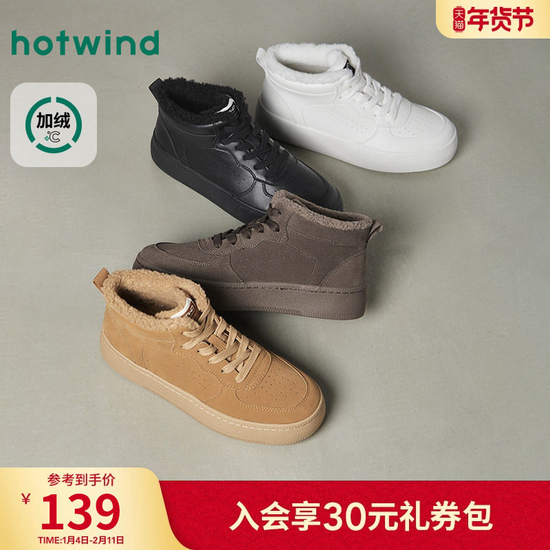 热风男鞋2025年冬季新款复古高帮板鞋加绒小白鞋百搭增高休闲鞋子