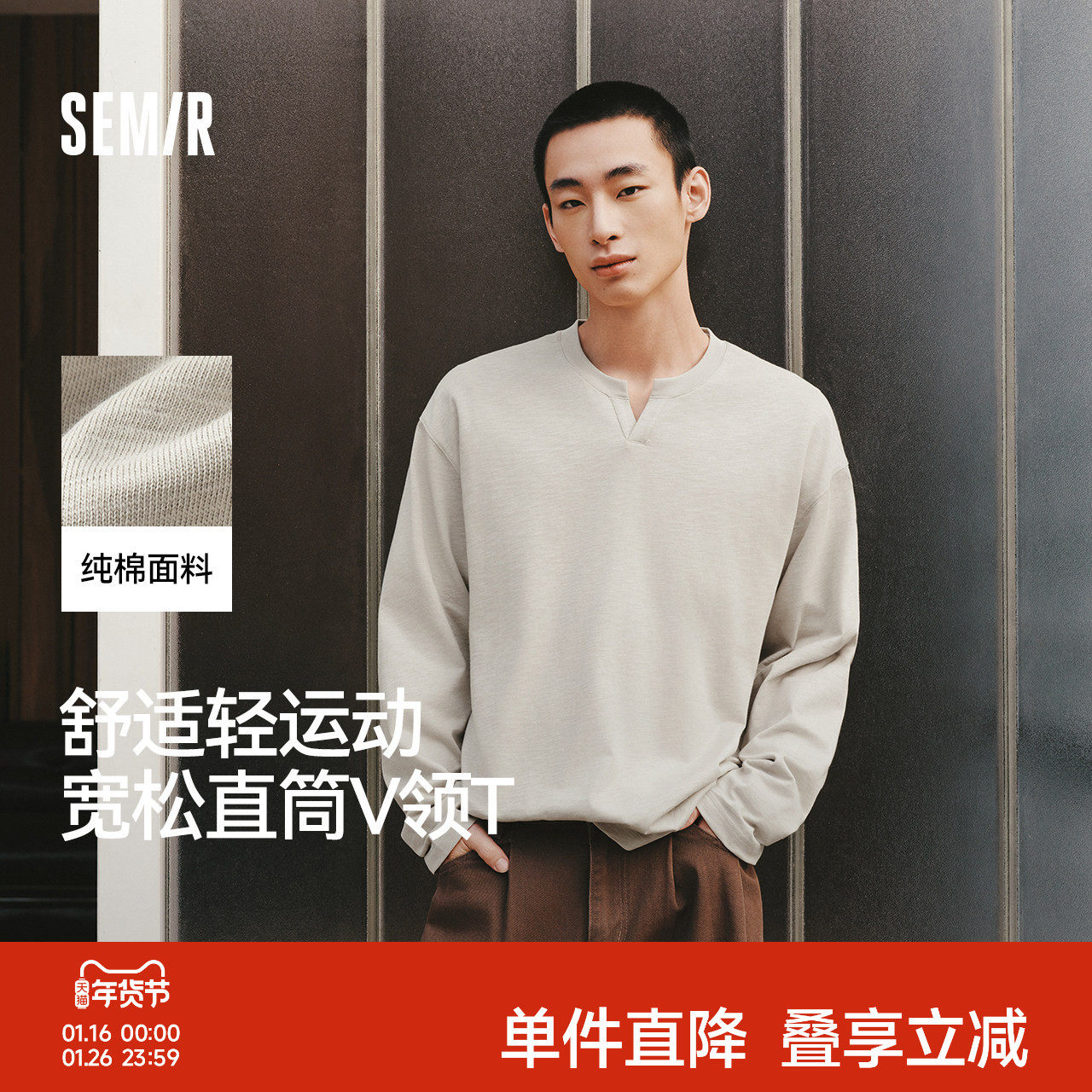 森马长袖T恤男纯色小v领内搭上衣2026春季新款宽松通勤百搭打底衣
