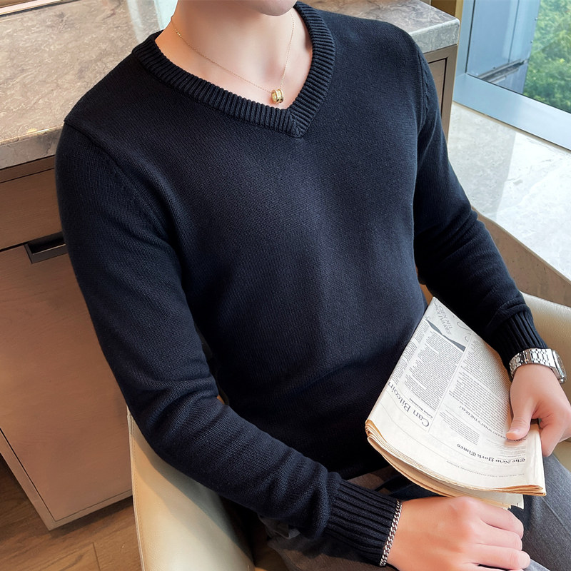 秋冬毛衣男v领长袖纯色鸡心领针织衫加厚保暖打底衫内搭线衣外套