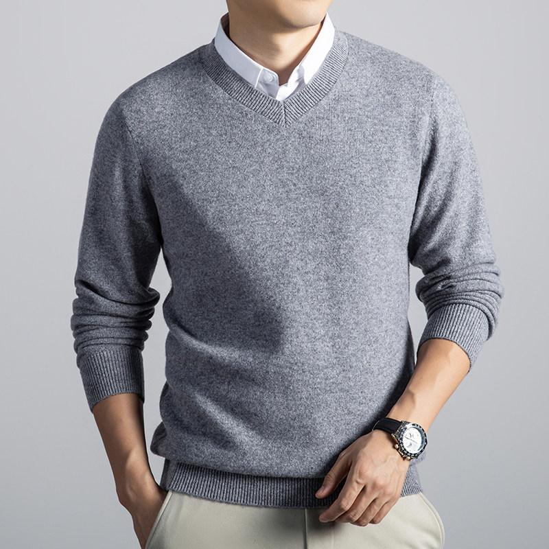 纯棉毛衣男v领长袖全棉针织衫套头打底衫重工线衣棉线商务鸡心领
