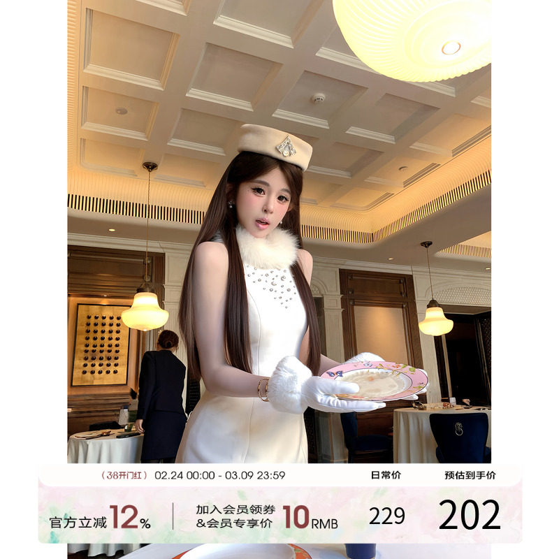 项天鹅er 法式连衣裙女2025冬季新款毛领拼接a字裙气质生日裙子