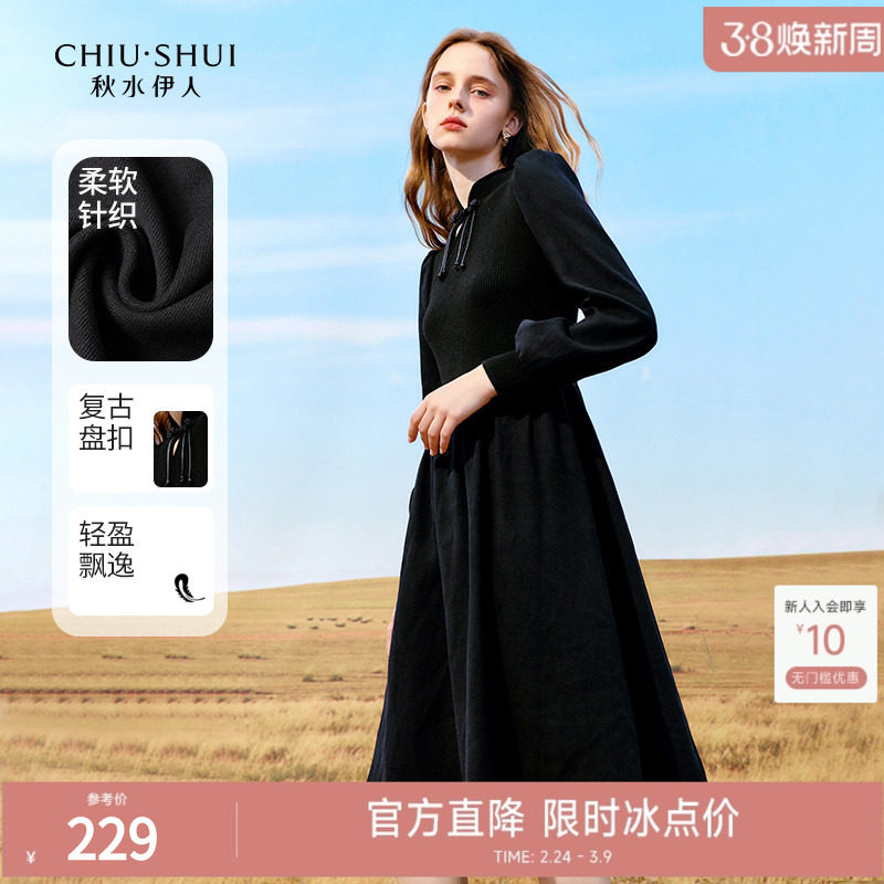 秋水伊人国风感针织拼接连衣裙2025年冬季新款新中式优雅A字裙