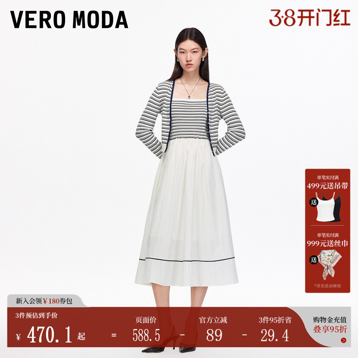 Vero Moda连衣裙女2025秋淑女风套装针织拼接A字裙325346012