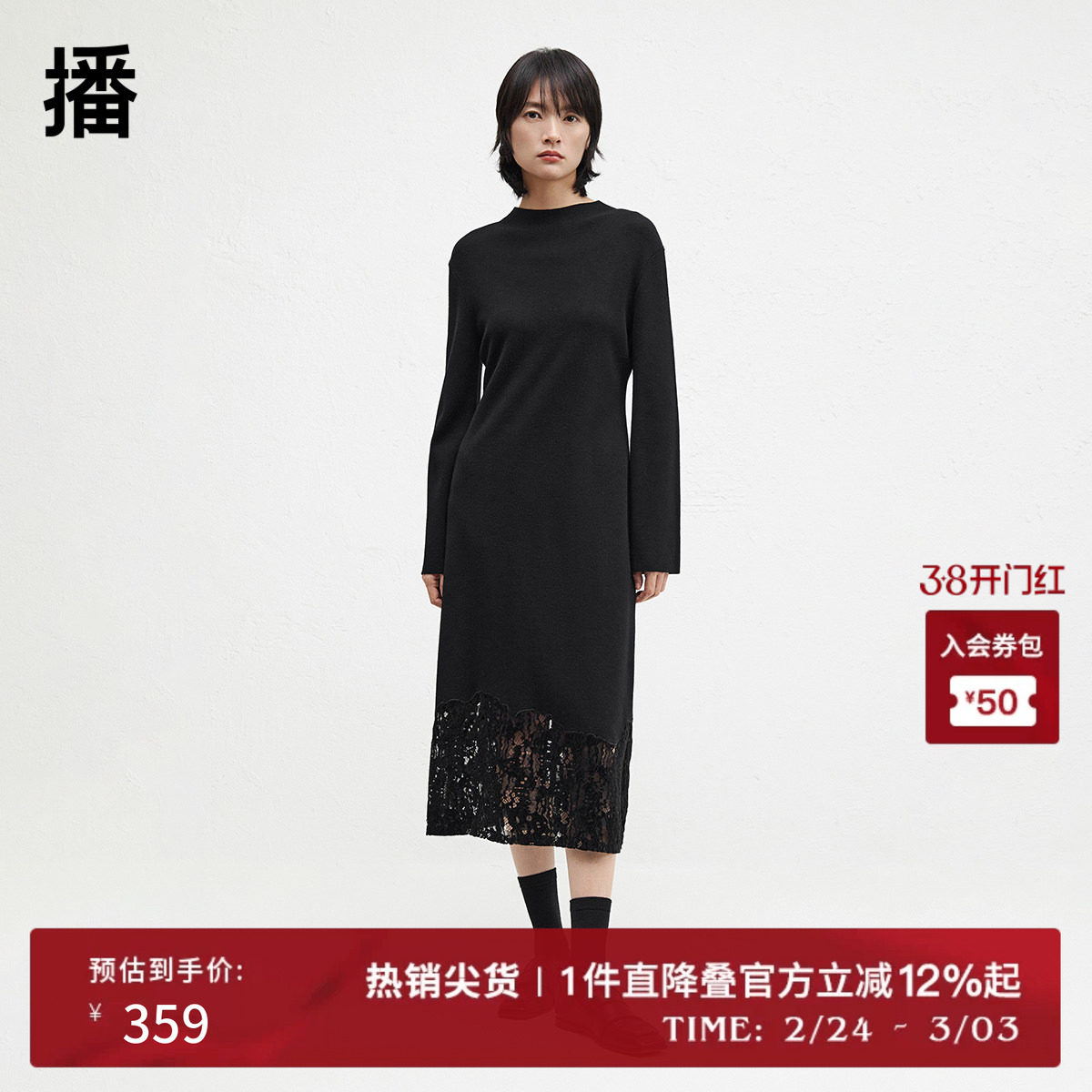 播商场同款高腰圆领连衣裙24冬新款蕾丝拼接A字摆裙子BDR4LD3435