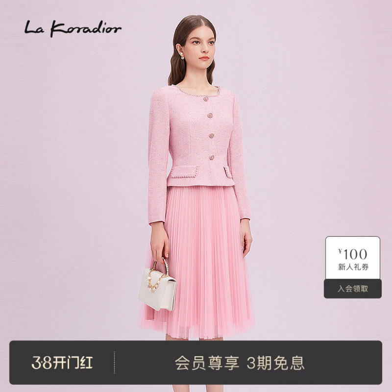 La Koradior拉珂蒂商场同款异材拼接香风气质假两件连衣裙a字长裙