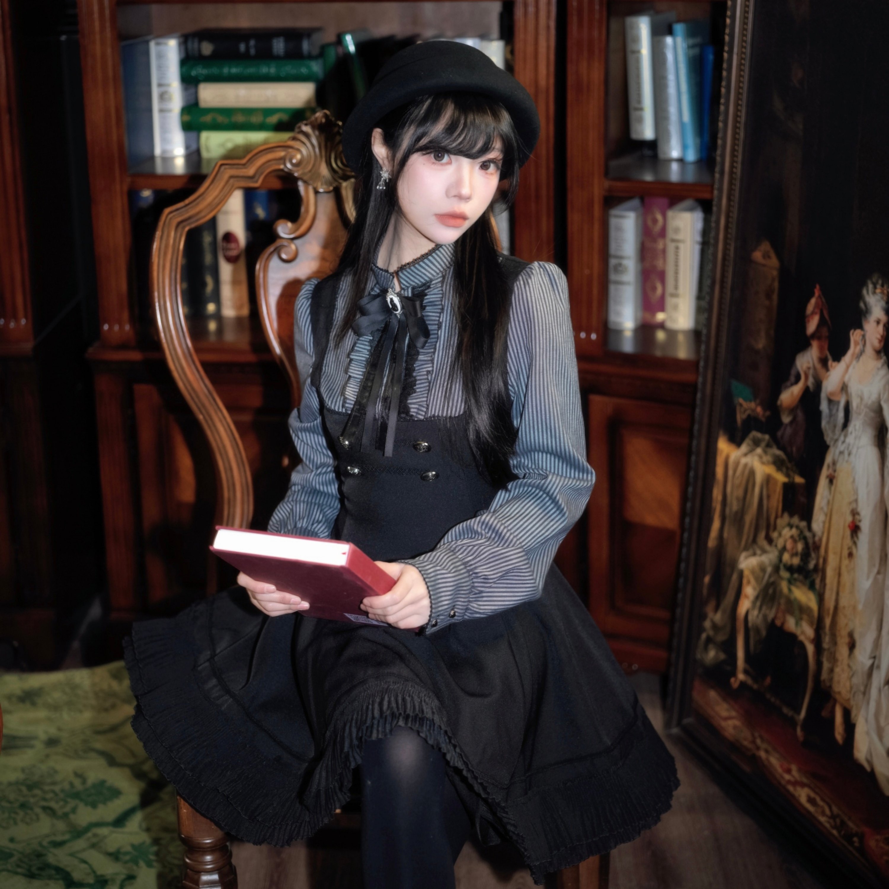 灰尘邓邓 法式吊带连衣裙女2026早春新款条纹拼接a字衬衫裙裙子