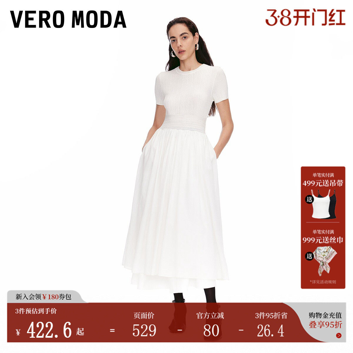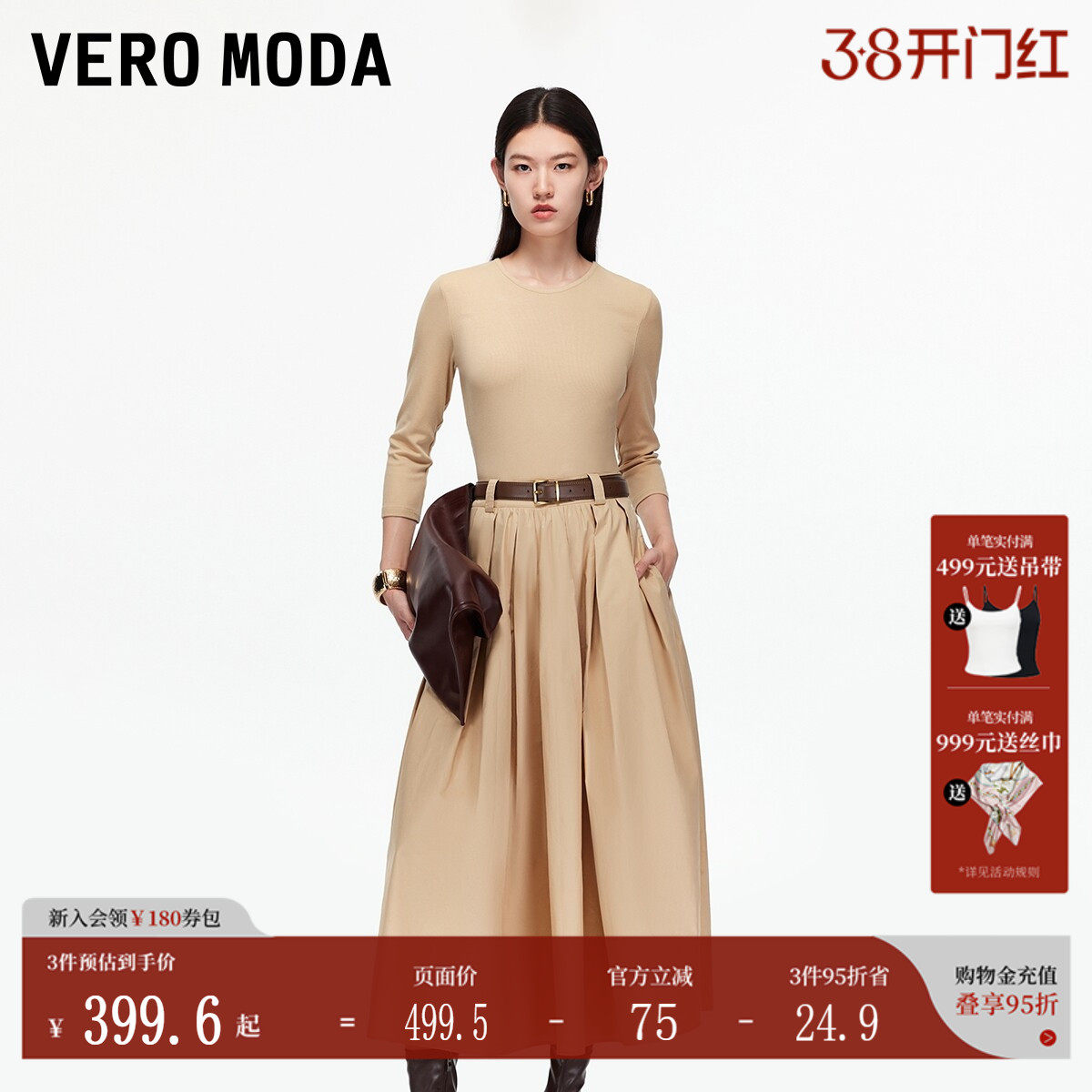 Vero Moda连衣裙25秋季新款圆领针织拼接A字长裙淑女风32537C005