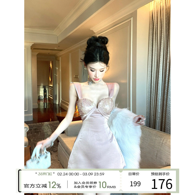 灰尘邓邓 法式吊带连衣裙女2025冬季新款拼接抹胸a字裙生日裙子