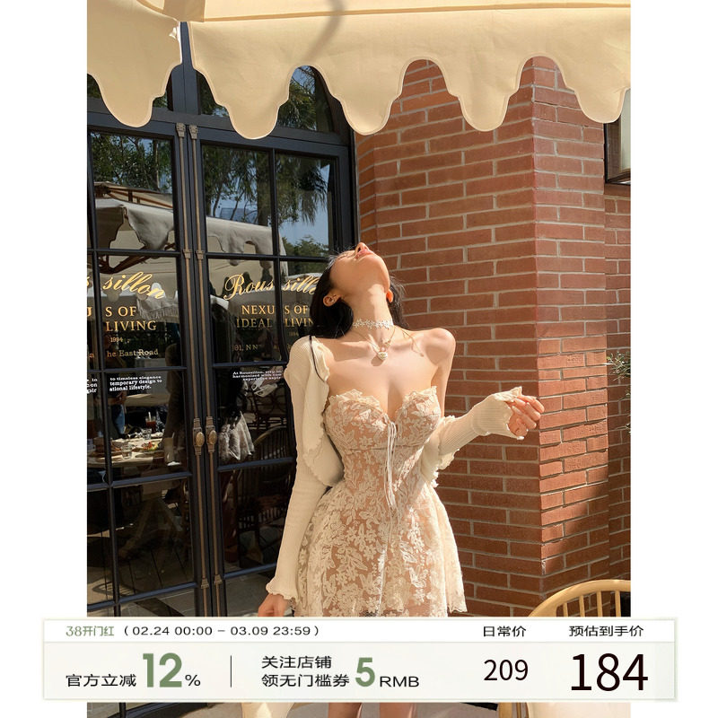 牛了牛了 蕾丝拼接吊带连衣裙女2025秋冬抹胸皮裙a字裙辣妹裙子