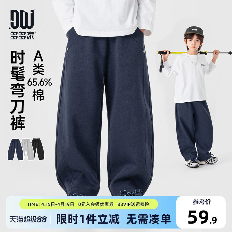 多多家男童卫裤弯刀裤2026春装新款春秋季儿童中大童简约百搭裤子