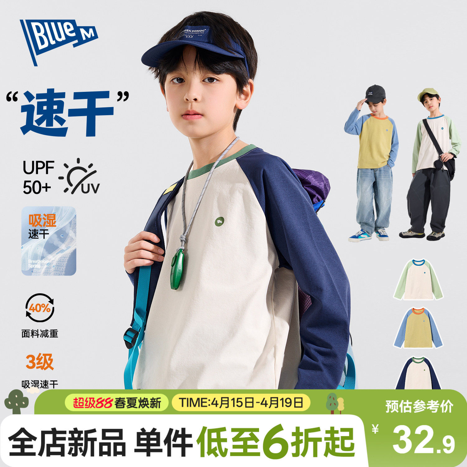 【防晒】儿童速干衣男童长袖t恤上衣春秋男孩运动衣服青少年大童