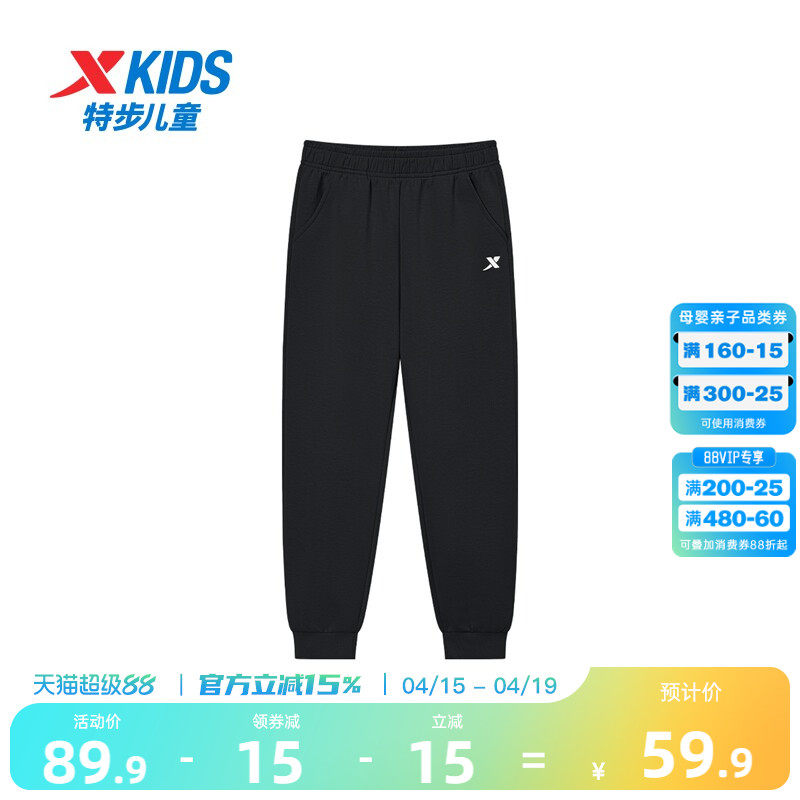 特步童装儿童运动裤2026春秋新款男童长裤大童防蚊裤春装裤子卫裤