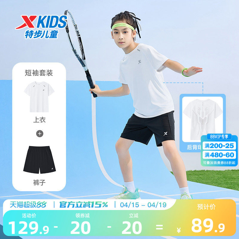 盾甲|特步童装男童速干短袖T恤运动套装2026夏季款儿童中大童夏装