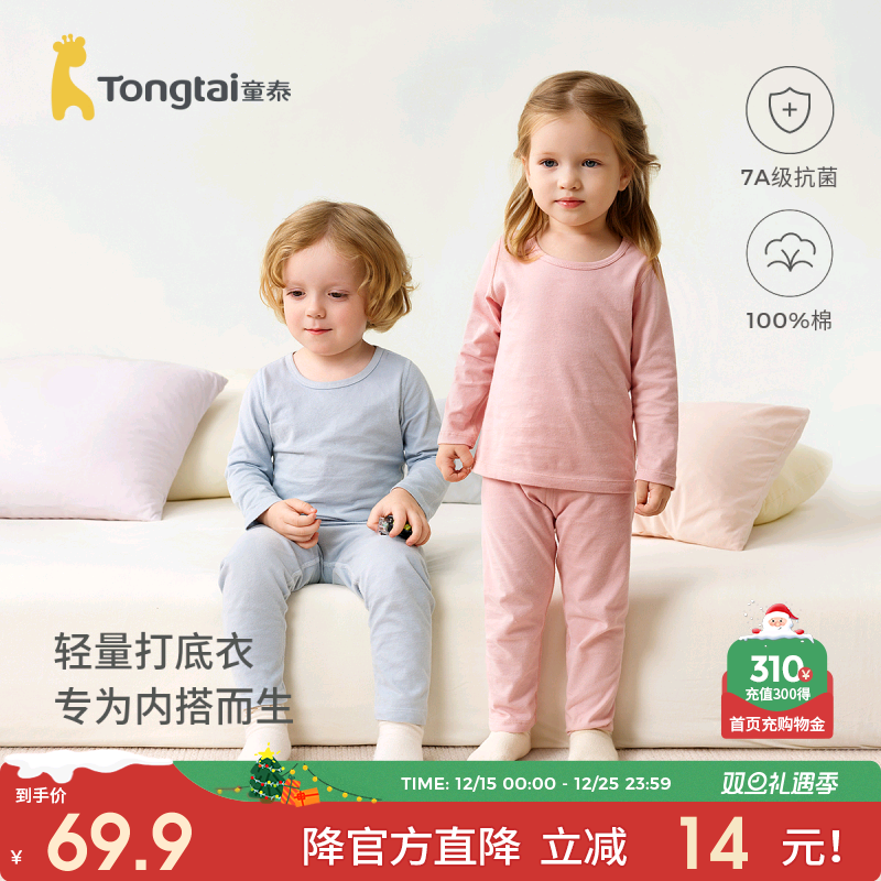 童泰儿童秋衣套装春秋季纯棉打底衣服男童家居服女童睡衣大童秋裤