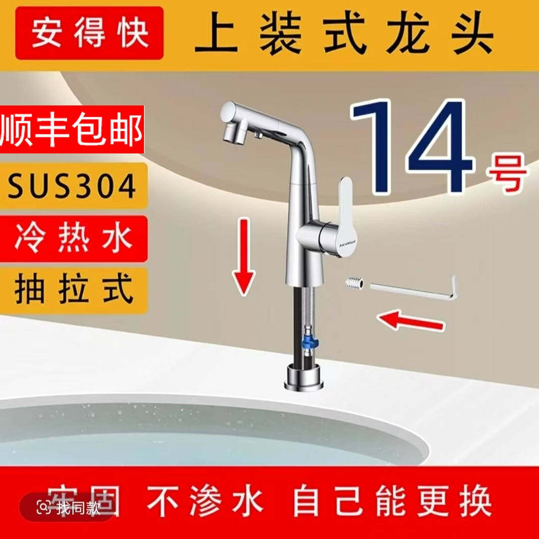 门店同款Aandekuai安得快卫生间上装式面盆抽拉龙头洗脸池水龙头