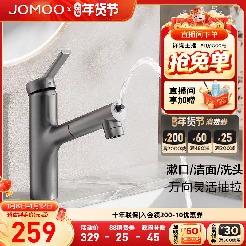 九牧官方旗舰店水龙头抽拉式面盆冷热二合一卫生间洗脸旋转双模式