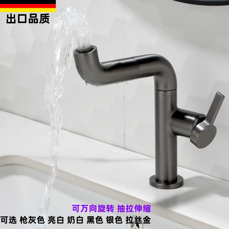 德国全铜面盆抽拉龙头洗脸盆冷热水卫生间台盆枪灰色洗手盆水龙头