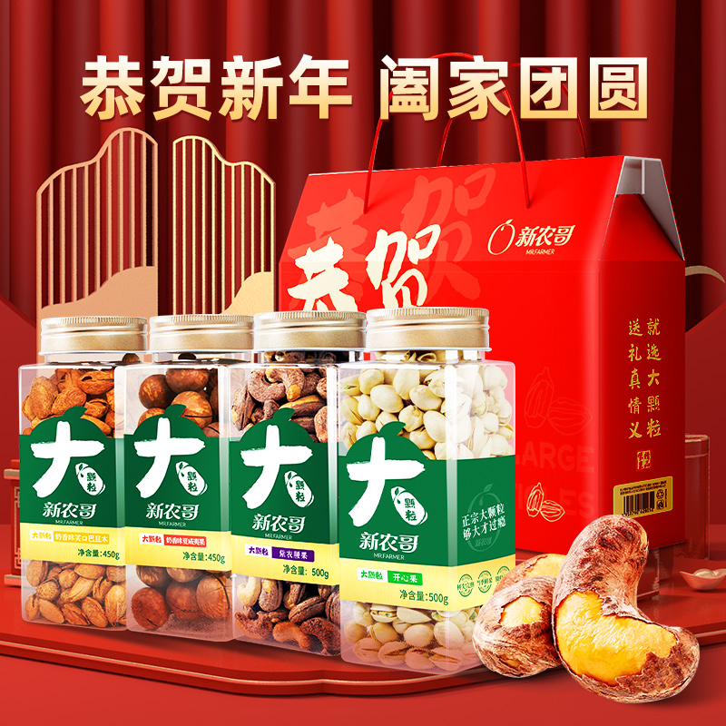 新农哥大颗粒纯坚果礼盒过年礼盒干果礼品送长辈(含开心果腰果)