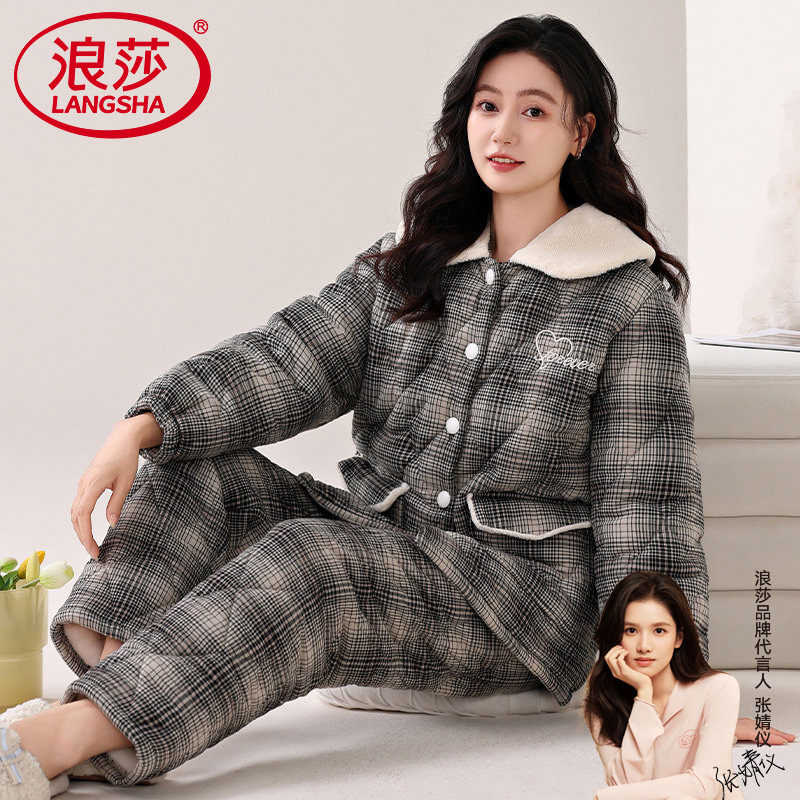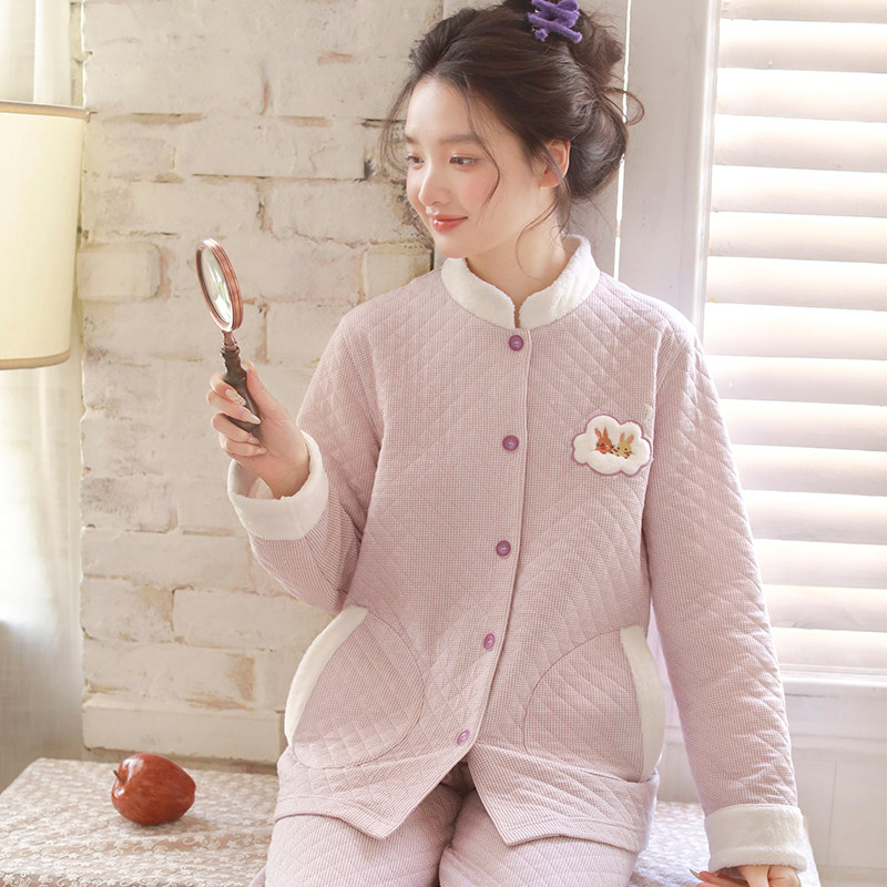 - 加厚 夹棉 家居服女