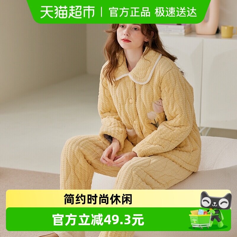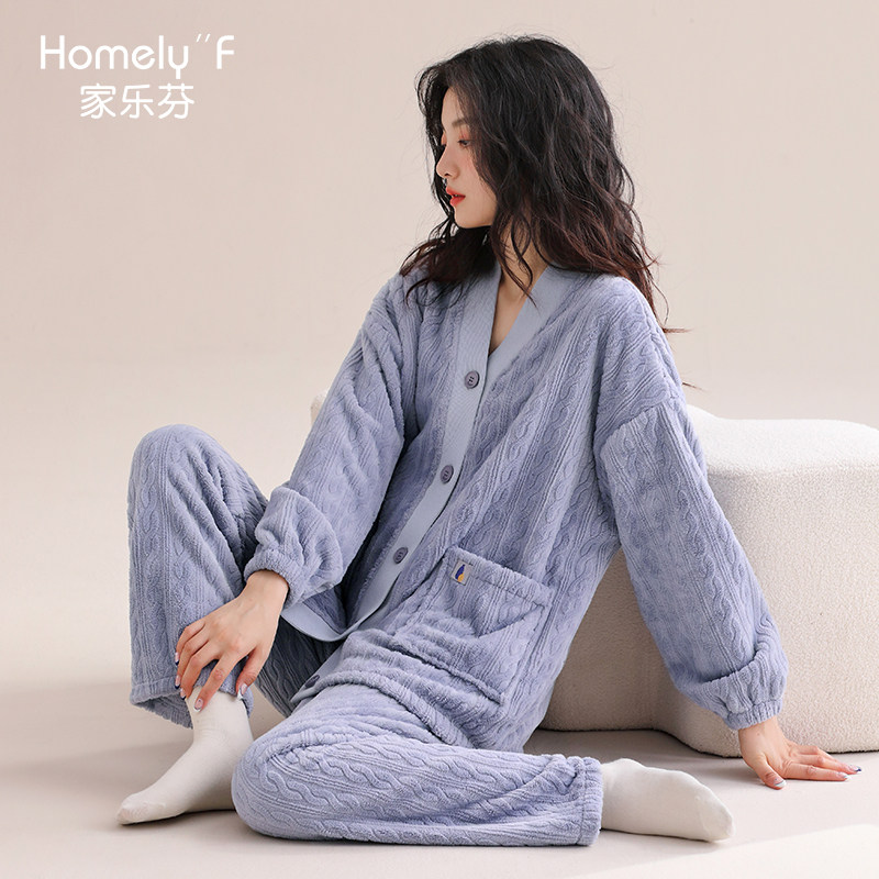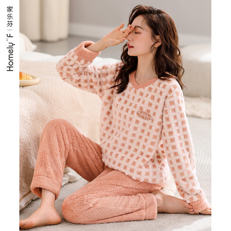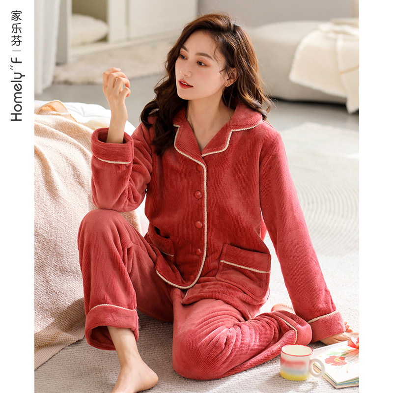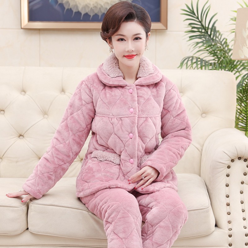 - 珊瑚绒夹棉睡衣女冬