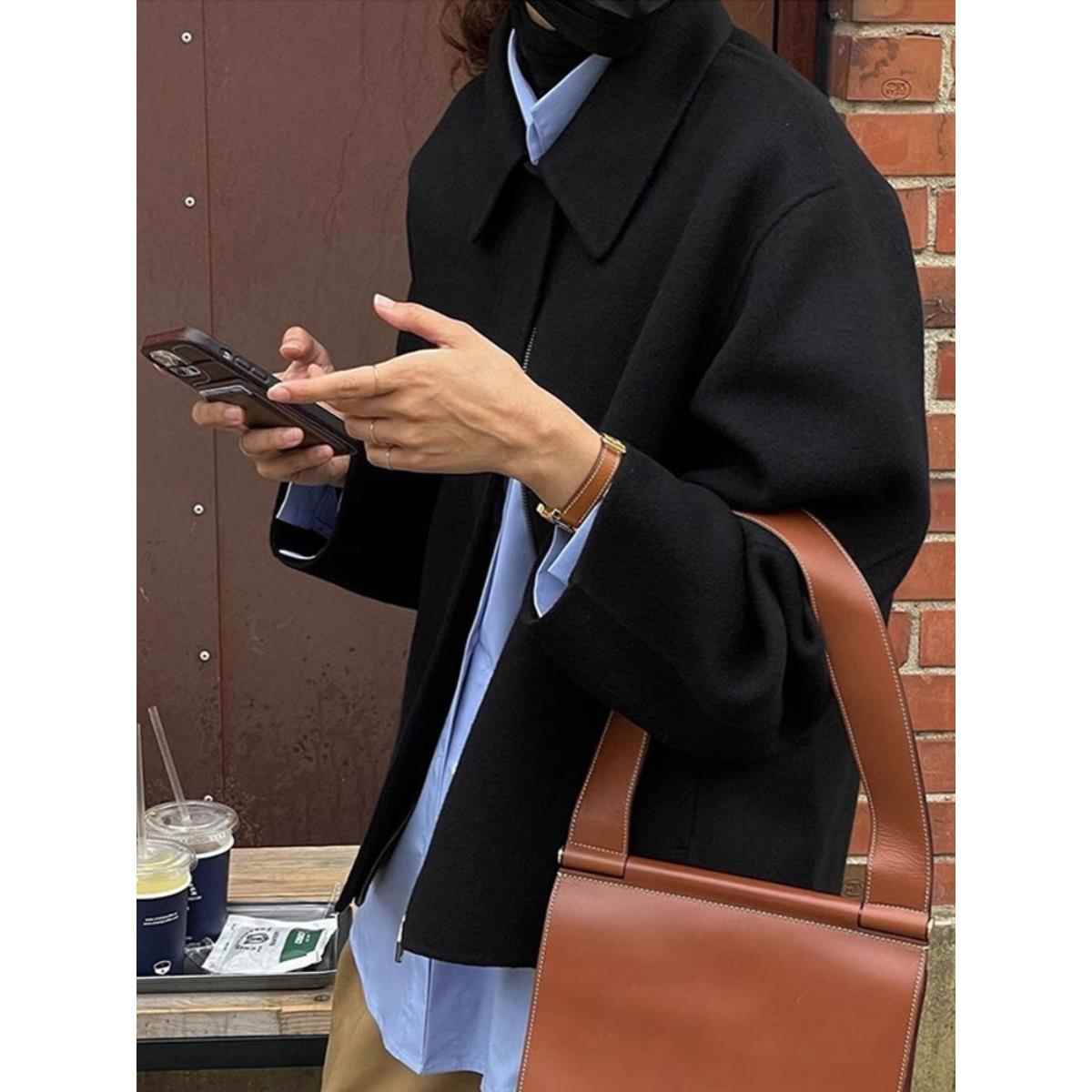 日本代购深灰色羊毛毛呢外套女秋冬高级感休闲慵懒风开衫大衣上衣