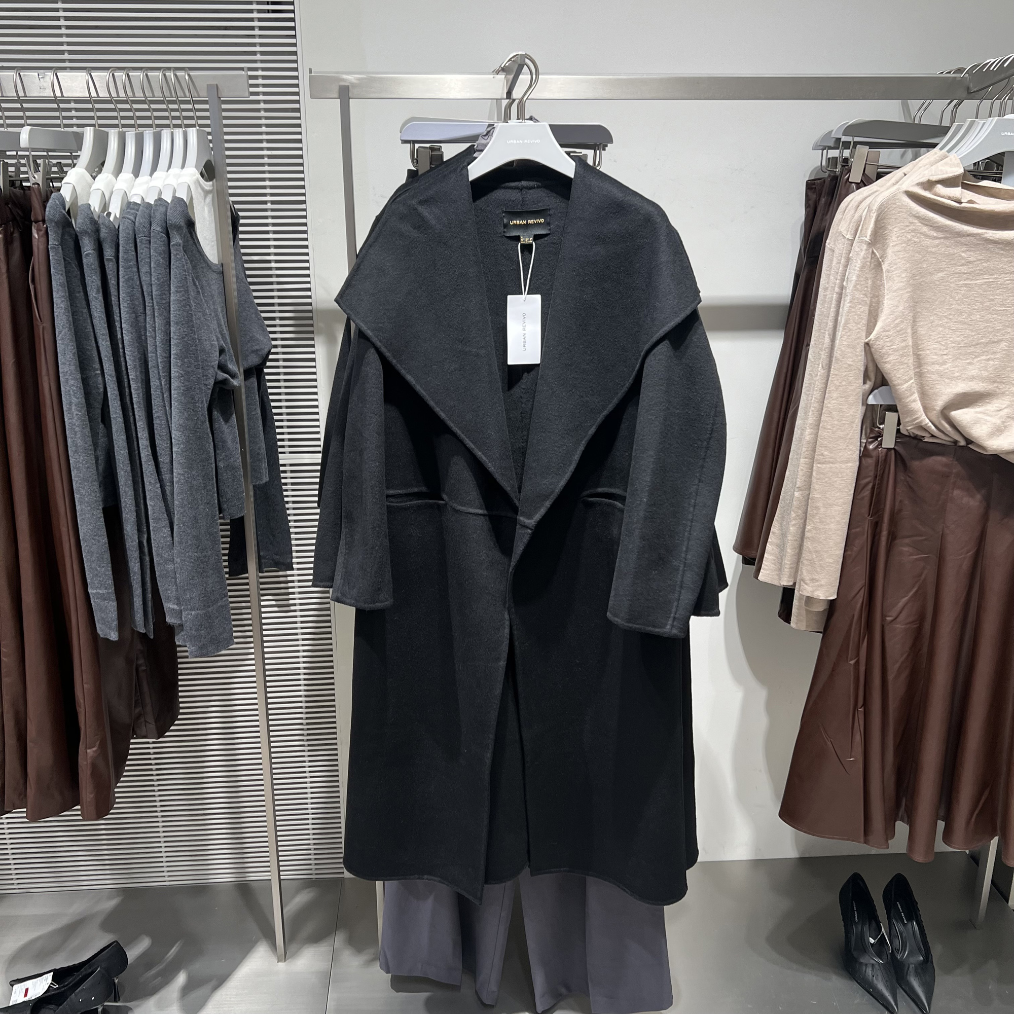 UR国内代购2025冬季女气质翻领含羊毛呢料长款毛呢大衣UWM150075