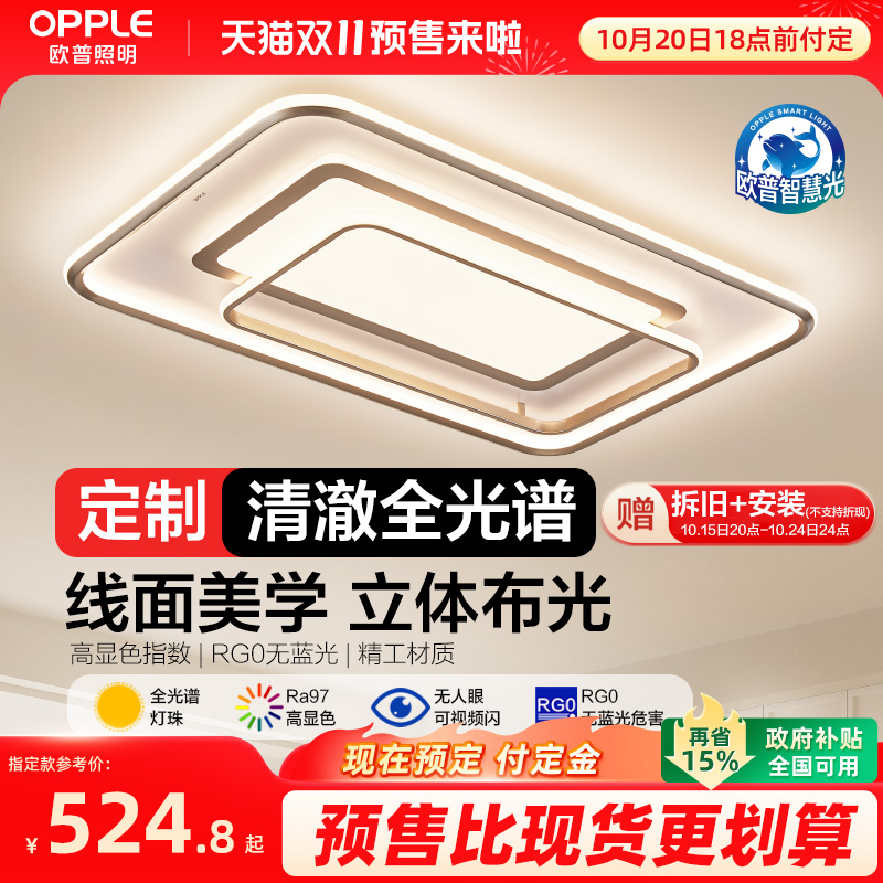 欧普全光谱轻奢双层线面高亮新款简约现代客厅灯吸顶灯灯具智控TC