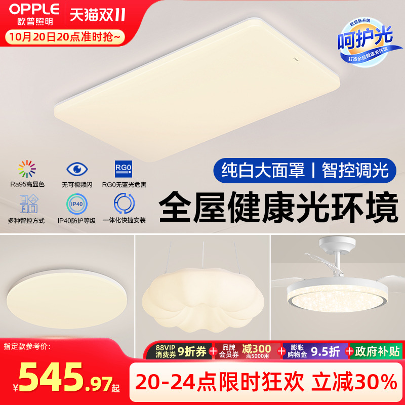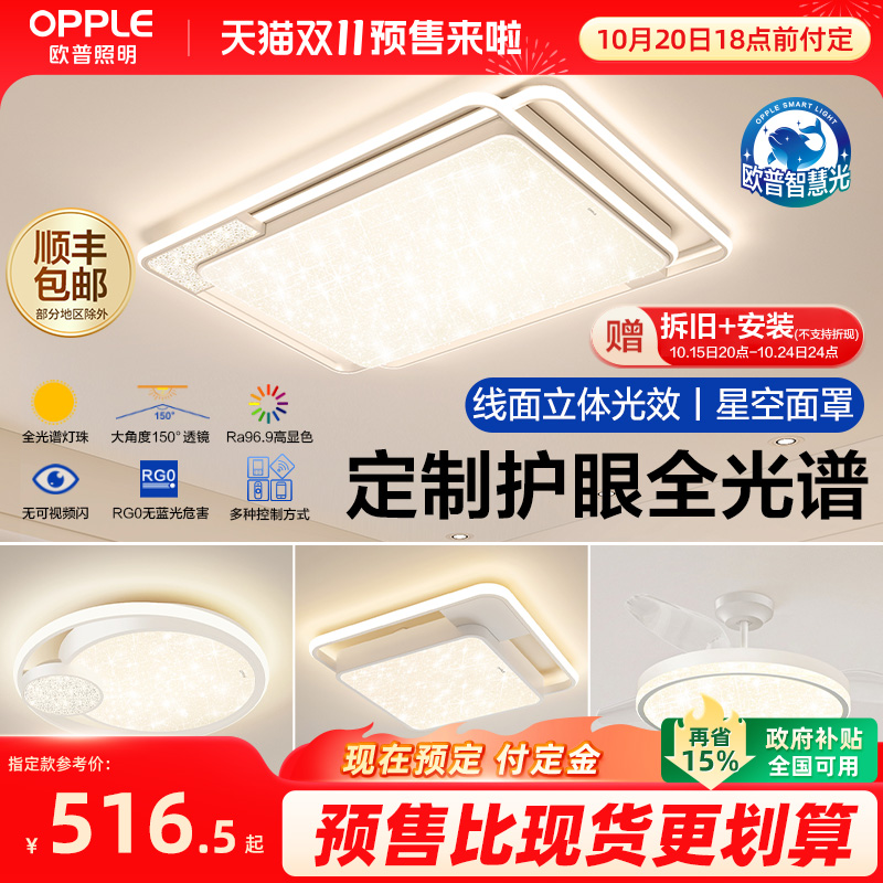 欧普LED全光谱护眼吸顶灯饰灯具客厅卧室餐厅书房智能全套悦然
