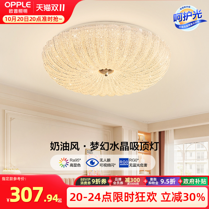 欧普照明法式奶油风仙气水晶砂吸顶灯简约灯具饰百搭卧室客厅DD