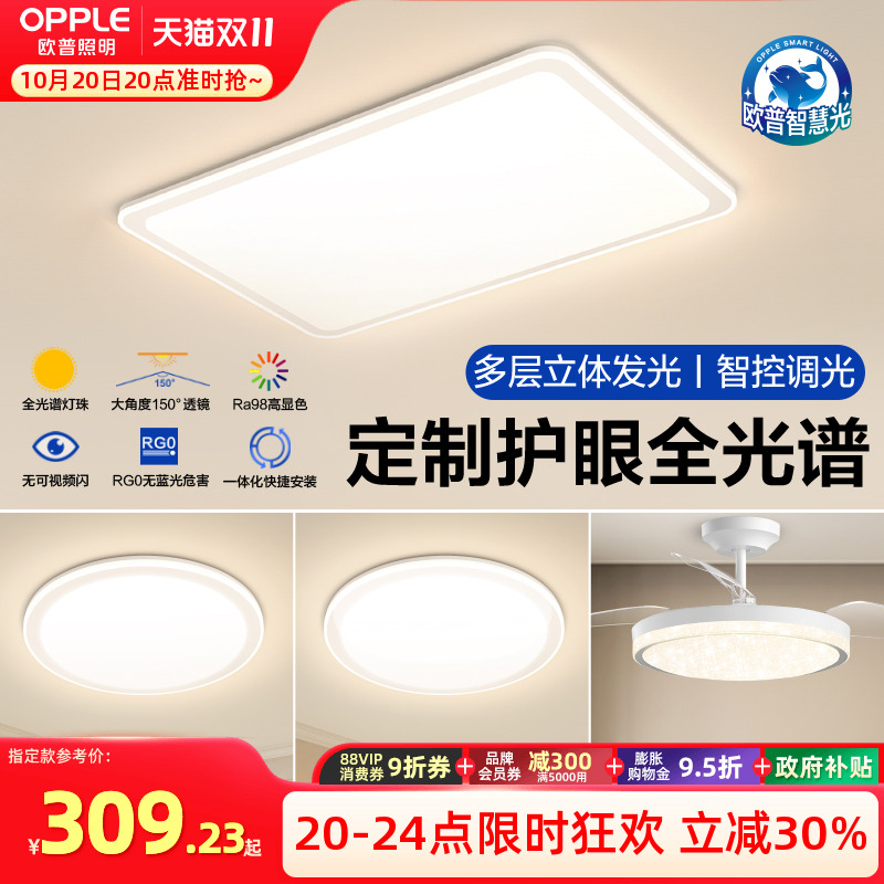 欧普LED全光谱护眼吸顶灯饰灯具客厅卧室餐厅书房智能语音全套TC