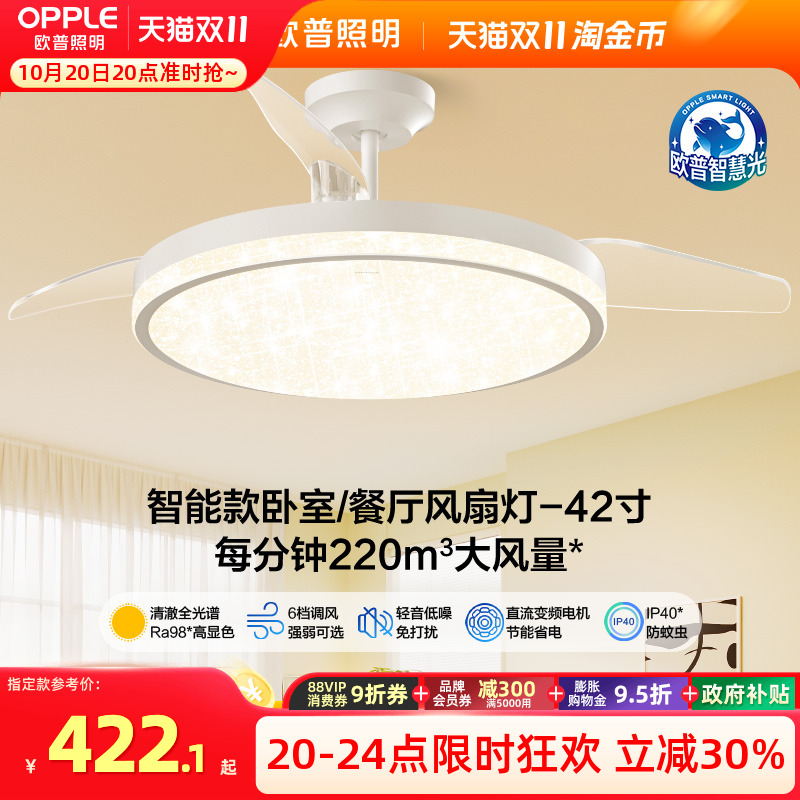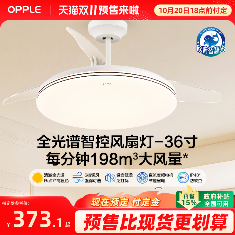 国补OPPLE欧普风扇灯隐形扇客厅餐厅卧室简约灯具吊扇灯吸顶灯